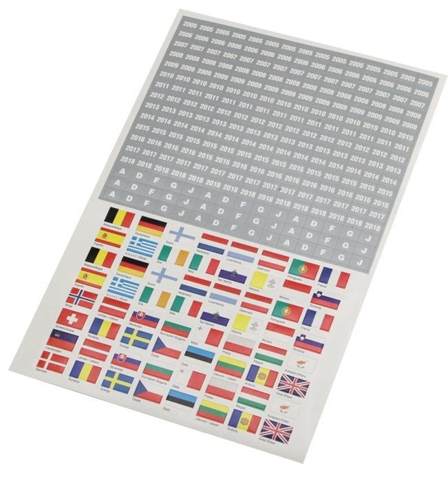 Self-sticking Flags of the Euro countries, year dates, symbols of the mints.