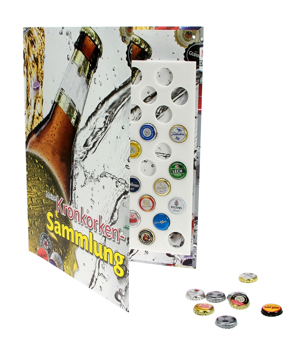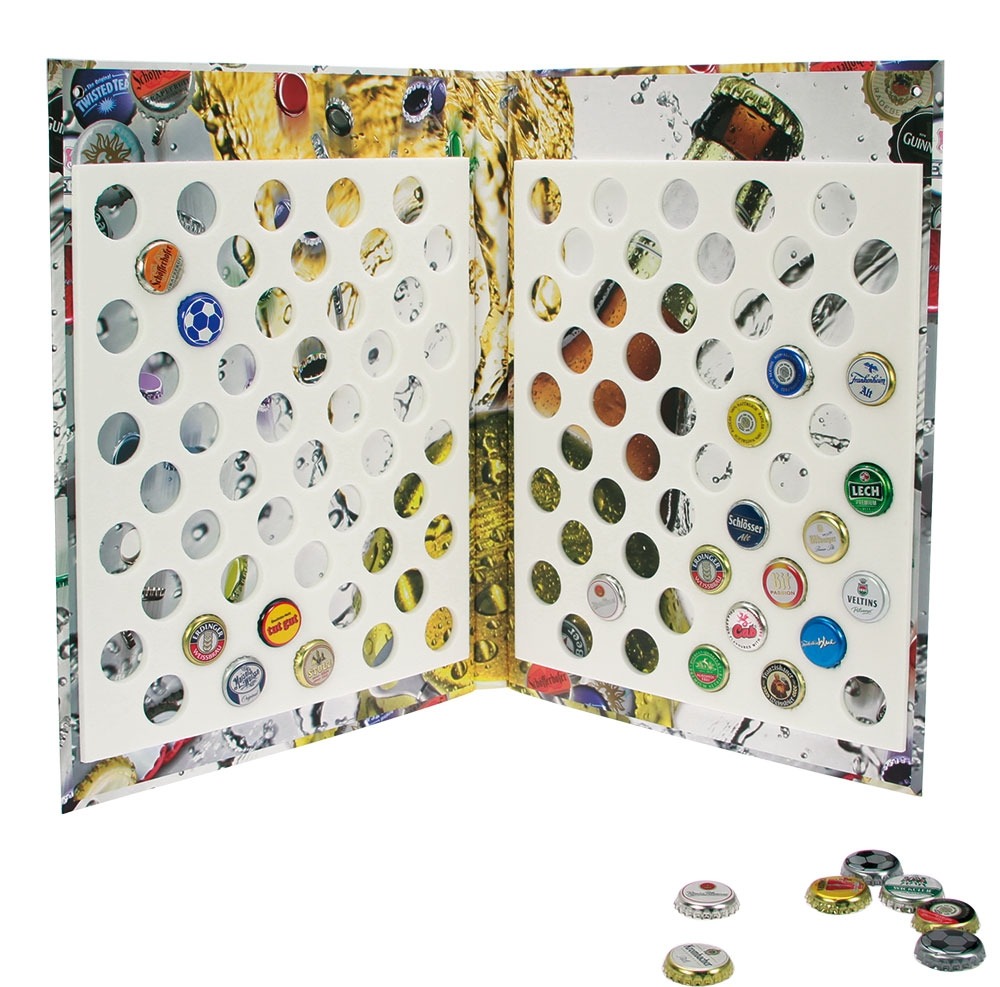 This bottle cap folder display is designed to fit up to 100 of your favorite bottle caps!