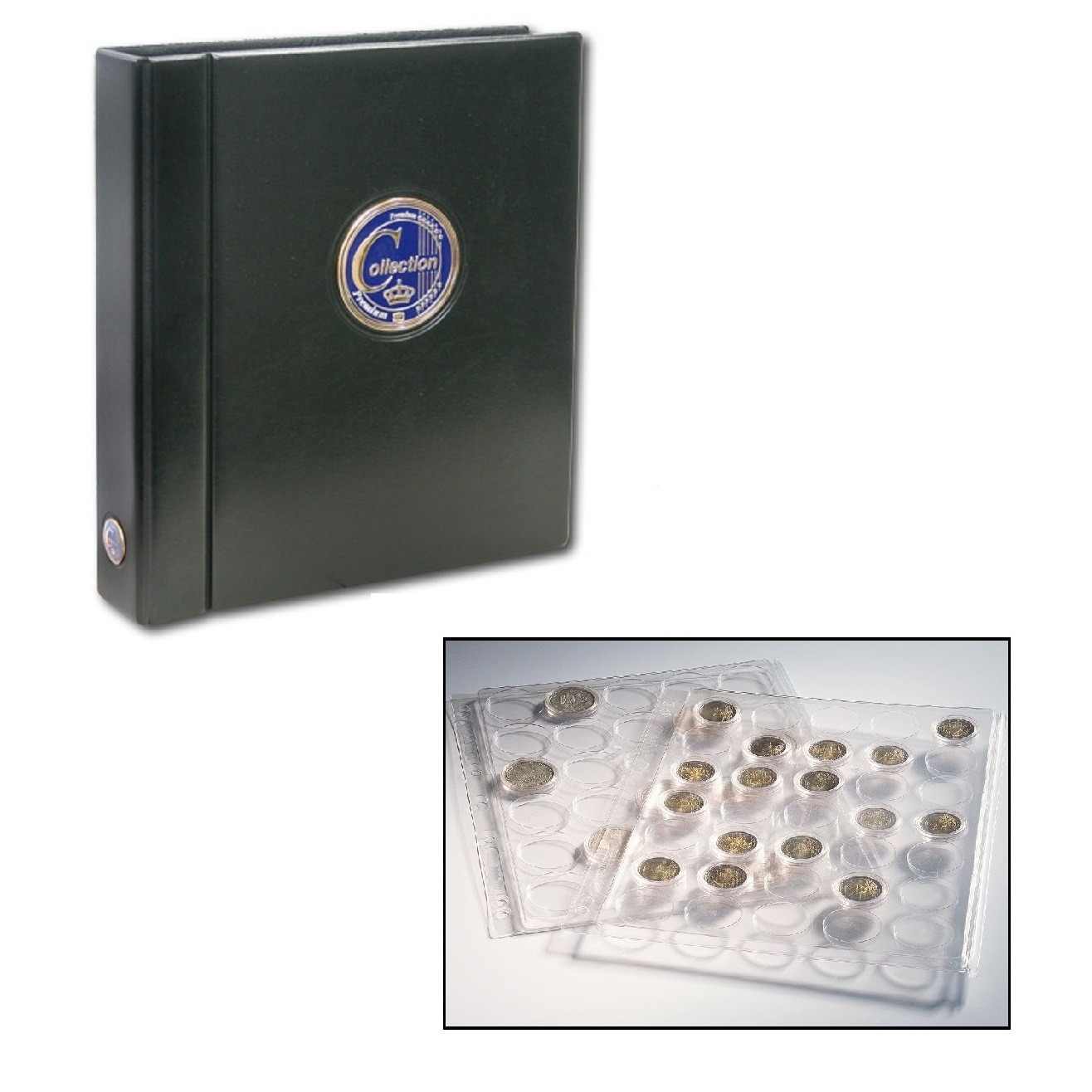 Our latest development of a Coin Album with Pages that allow you to place your US Half Dollars in Capsules into an album you can place on your shelf instead of a case. This package includes our Premium Collecto Binder in Black (No. 481) with a 3″ wide spine, as well as 2 durable, transparent album pages that holds coin capsules up to a 37 mm outside diameter (L-3031), which means they are perfect to fit US Half Dollars