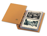 Compact Standard blue album with 10 pages No. 7869 for Vintage Postcards and tan polyester inserts. 7869 Page has 2 pockets (5-5/8″ x 3-3/4″ each). Transparent pages let you see both sides of the item or use tan pocket inserts to place items back to back.