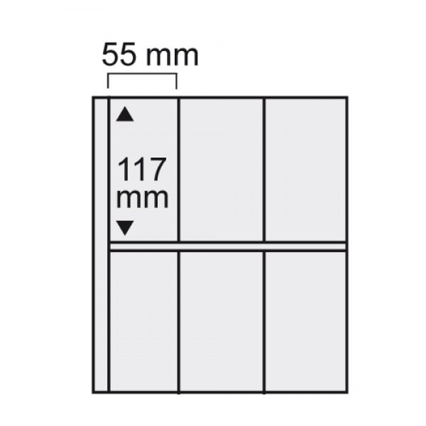 Clear page with 6 pockets (4-5/8″ x 2-1/8″W each)
