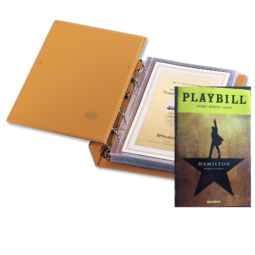 Tan Compact Luxus Album with 10 Pages # 874 for Playbills. Page size is 6-3/4" x 9-1/8" high with 3/8" thick pocket