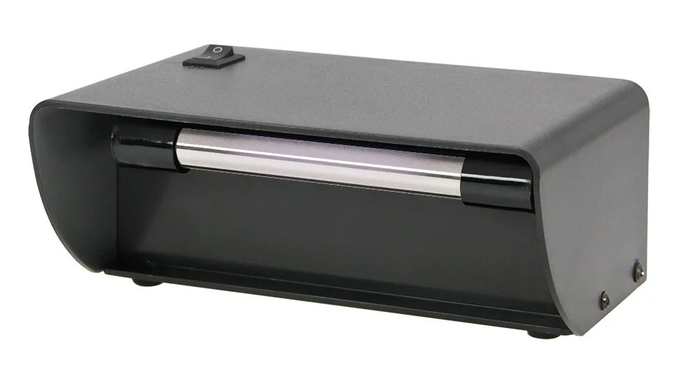 An affordable desktop UV lamp for your home or office. This is our shortwave (254nm) unit with a 4 watt UV bulb. Lightweight and easily transportable. 110v AC power.