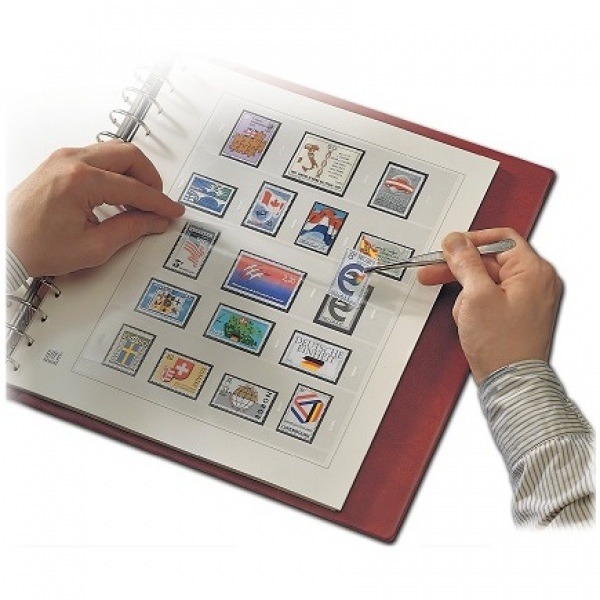 - Collect both mint and used stamps on the same album page – attach the used stamps with a hinge to the illustrated cardboard page. The clear top page acts as the interleaf.
