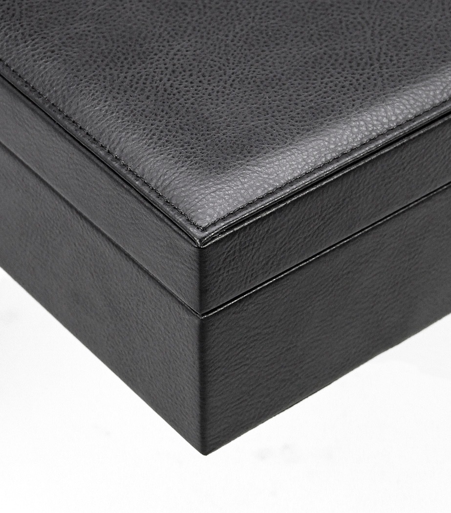 - padded black leather exterior with felt on underside to protect surfaces