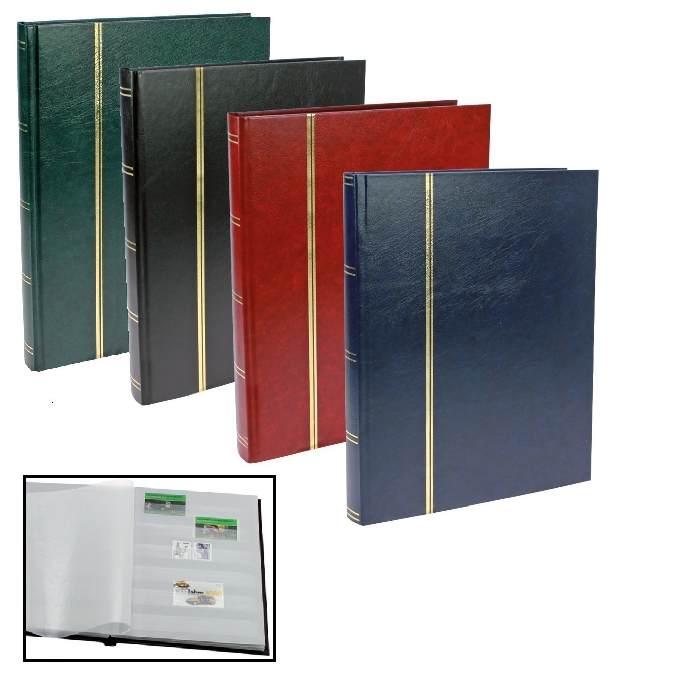 Stamp Albums Stock Books – Traditional full size stockbook available in hunter green, wine red, navy blue and black covers with thirty-two (32) white pages.