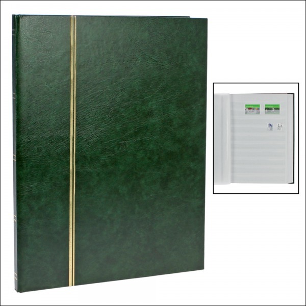 Stamp Albums Stock Books – Traditional full size stockbook in green with sixteen (16) white pages.