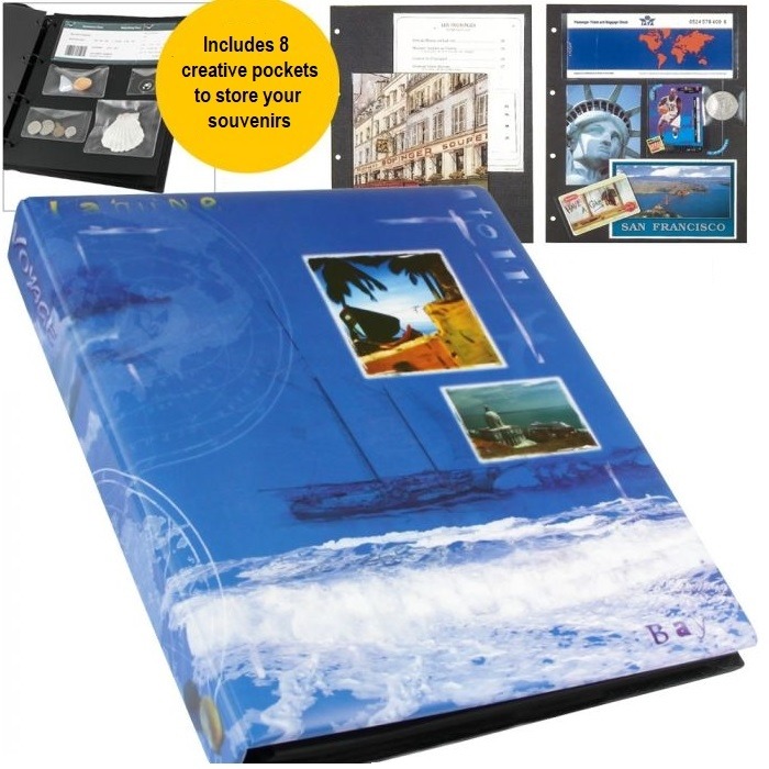 Also supplied are 8 unique, self-sticking pockets (No. 5507) in 4 different sizes to hold plane, train, entrance tickets or other travel souvenirs. The pockets are self sealing.