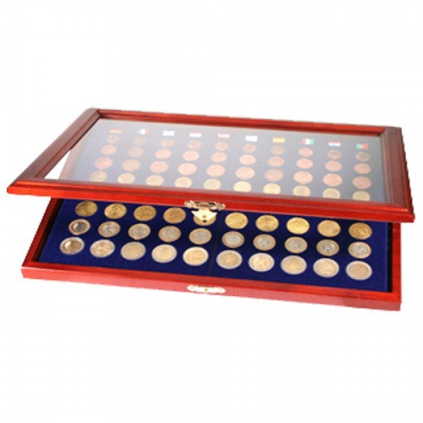– Royal blue velvet insert with 80 round compartments for 10 Euro Sets of 8 Coins